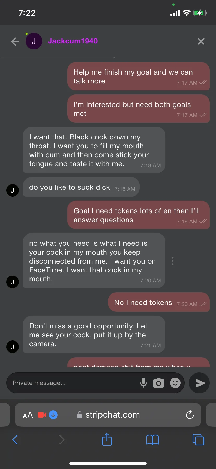 I do not take demands if you are not giving me tokens point blank full stop. Treat sex workers with respect this is our job… let this be an example and a warning do not mess with me and be respectful.